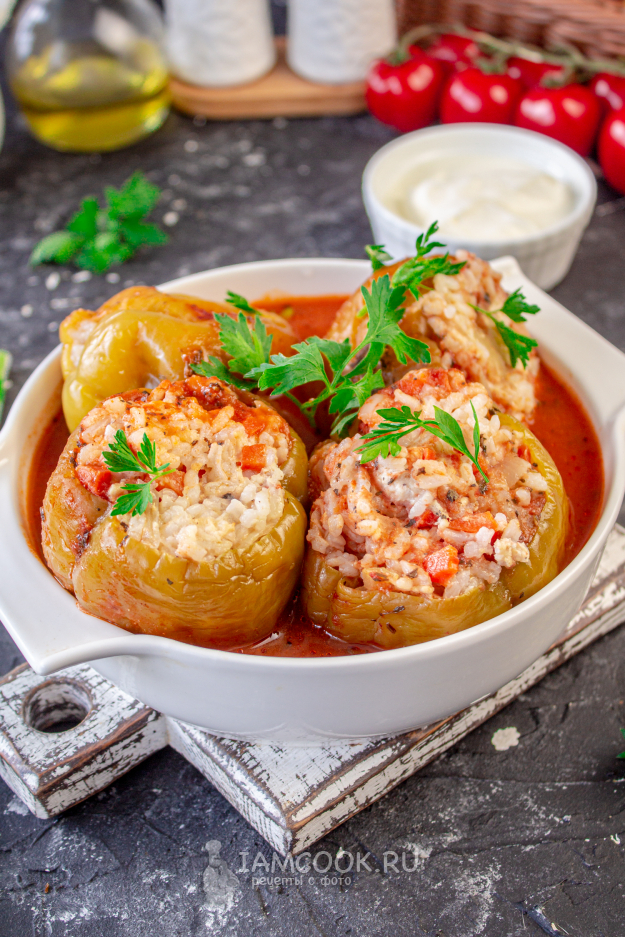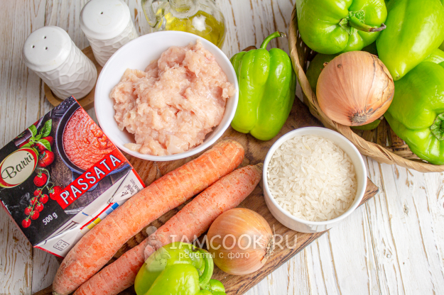 Продукты для приготовления фаршированных перцев в томатном соусе в мультиварке - перед вами.