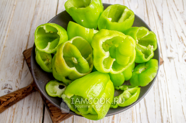 Зеленый грунтовой перец сорта "Долма" промойте, удалите семенную коробку, хорошо очистите от семян.