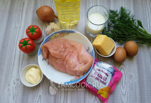 Для приготовления рубленых котлет из индейки с сыром возьмите все ингредиенты по списку.
