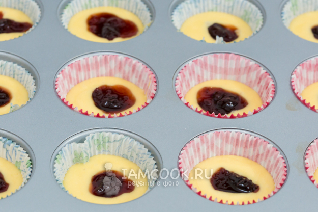 В качестве начинки я взяла вишневое варенье, но, конечно, подойдет любое. Также можно взять ягоды (замороженные в том числе, предварительно размораживать не надо), кусочки фруктов. Но можно выпекать маффины и без начинки - тоже будет вкусно.