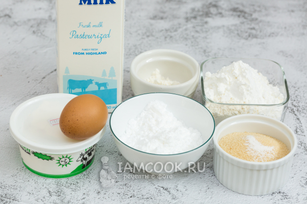 Для приготовления маффинов с начинкой и воздушной творожной шапочкой подготовьте продукты по списку.