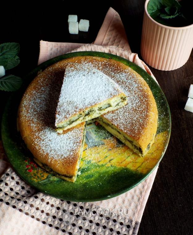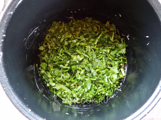 Выпекать пирог с щавелем в мультиварке на режиме "Выпечка" 40 минут.