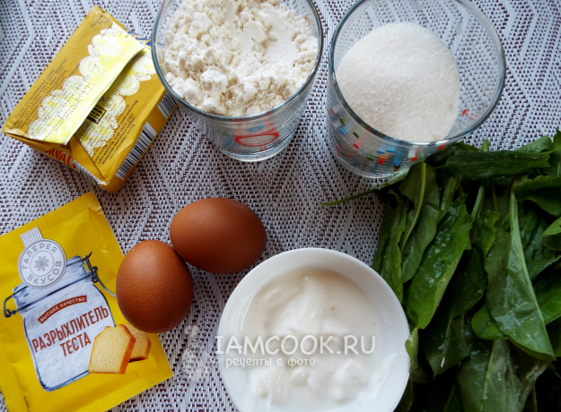 Чтобы приготовить пирог с щавелем в мультиварке надо взять такой набор продуктов.