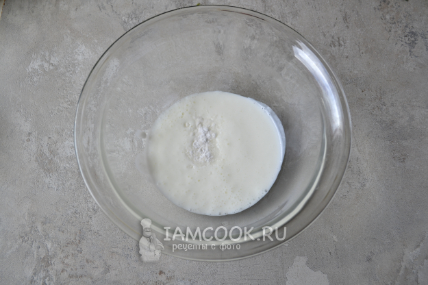 В глубокую миску налейте кефир и добавьте в него соду.