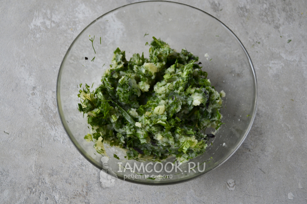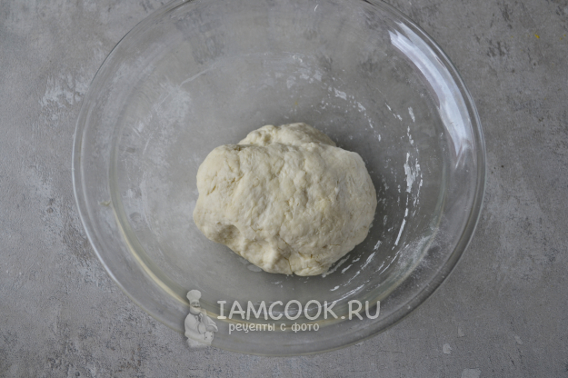 Замесите упругое тесто. Накройте миску чистым полотенцем и оставьте на столе, пока будете делать начинку.
