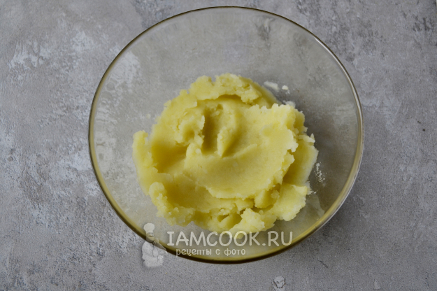 Для начинки отварите картофель до готовности в подсоленной воде. Отвар слейте, а картофель истолките в пюре.