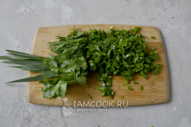 Зелень промойте и обсушите. Мелко нарежьте.