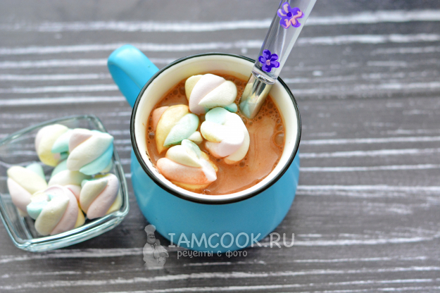 По желанию сверху положите маршмеллоу. Вместо маршмеллоу можно украсить сливками из баллончика или посыпать корицей.