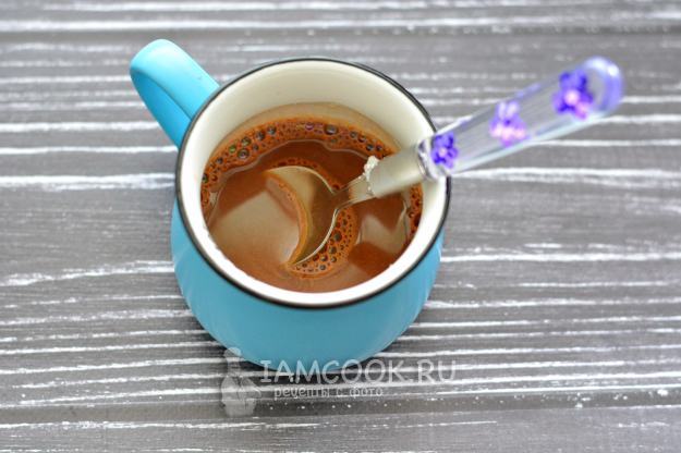 Небольшой совет: если вы вольёте молоко холодное, то какао получится умеренно тёплым - это хорошо, например, если вы готовите напиток для ребёнка, чтобы он не обжёгся. Если же вы любите очень горячее какао, то советую молоко подогреть в микроволновке около 30 секунд, тогда какао будет очень горячим.