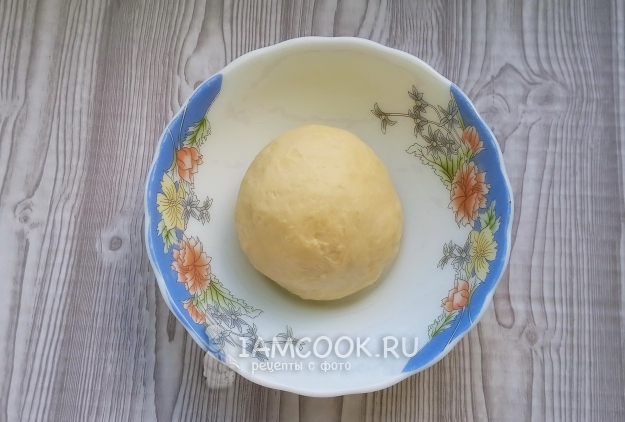 После выложите тесто на стол или другую поверхность, присыпанную мукой. Замесите достаточно крутое, но эластичное тесто. Месить нужно минут 7-8. Накройте его пленкой и дайте отдохнуть 15-20 минут.