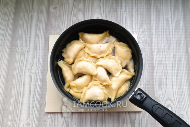 Сварите вареники. В кипящую подсоленную воду выложите вареники и перемешайте, чтобы они не прилипли ко дну кастрюли. После того как вареники всплывут, варите их еще 5-6 минут.