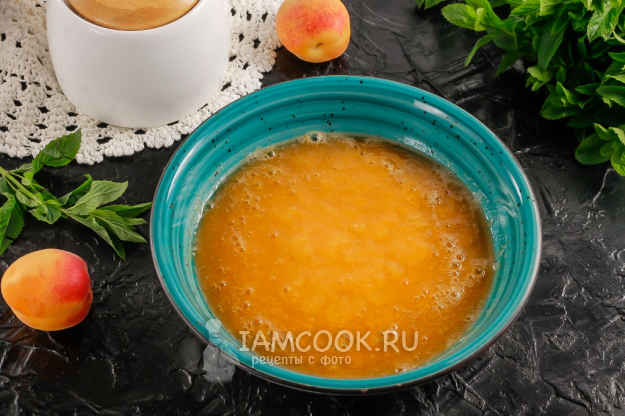 По частям добавьте в меренгу набухший желатин и абрикосовое пюре, взбивайте на высокой скорости техники.