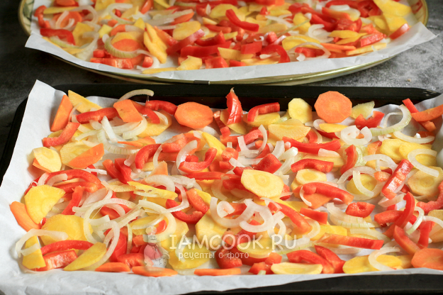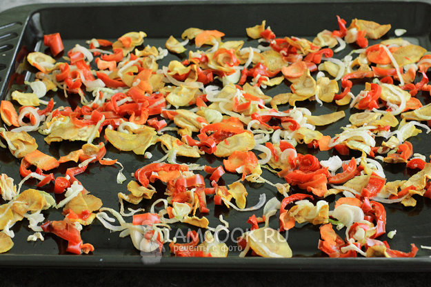 Через день количество овощей уменьшилось вдвое и поместилось на один противень.