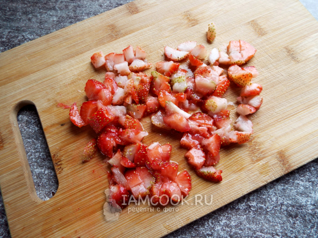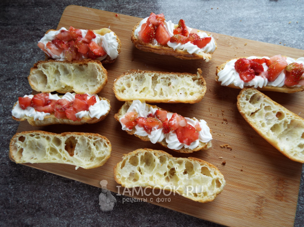 На нижнюю часть выложить крем, а сверху - клубнику.