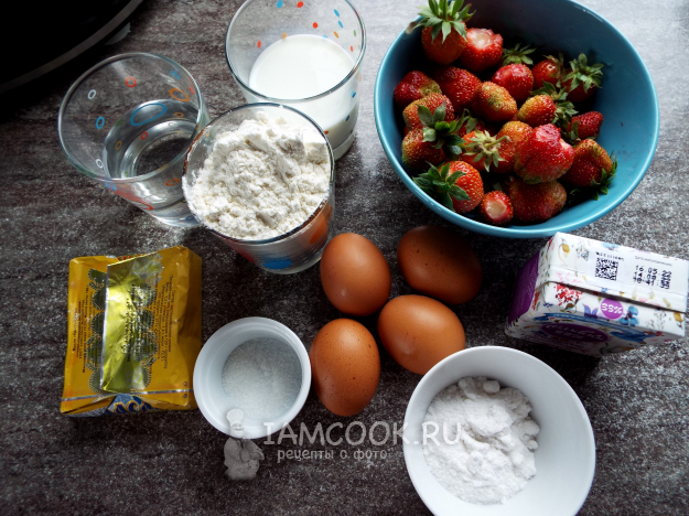 Возьмите необходимые продукты для приготовления эклеров с клубникой и сливочным кремом. Вес яиц вместе со скорлупой - 240 г.