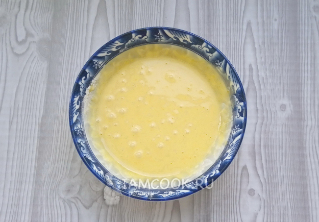 Налейте 4-5 столовых ложек молока. Снова перемешайте все эти ингредиенты. Смесь должна быть однородной, гладкой и без комочков. Удобно это делать венчиком.