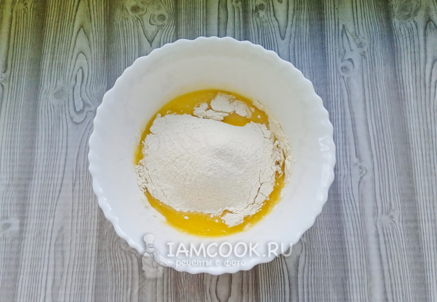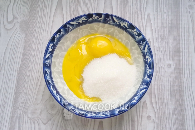 Хорошо перемешайте желтки, сахар и ванильный сахар. Добавьте крахмал или такое же количество муки.