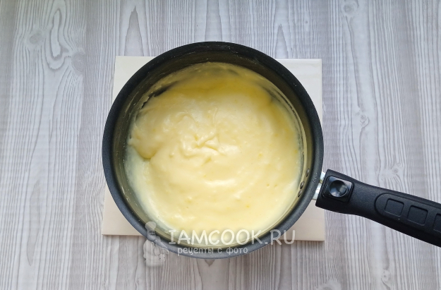 Молоко налейте в кастрюлю с толстым дном или антипригарным покрытием. Когда молоко начнет закипать, влейте приготовленную смесь. Постоянно помешивая, доведите крем до загустения. Крем "Патисьер" готов. Охладите его до комнатной температуры.