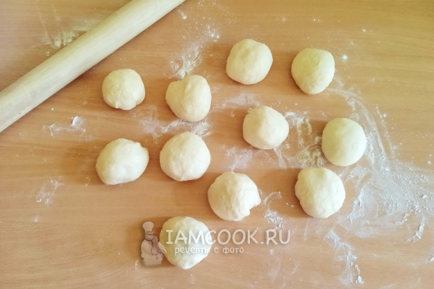 Достаньте тесто из миски, обомните и разделите на шарики весом 50-60 граммов.