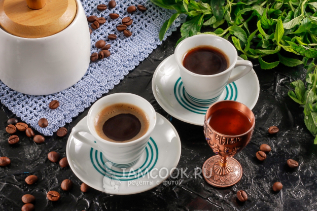 Перелейте заваренный кофе в кофейные чашечки и в каждую из них добавьте 1-1,5 ч.л. спиртного напитка. Кофе Коретто полностью готов!