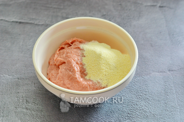 Добавьте к полученной мясной массе семолину, перемешайте до однородности.