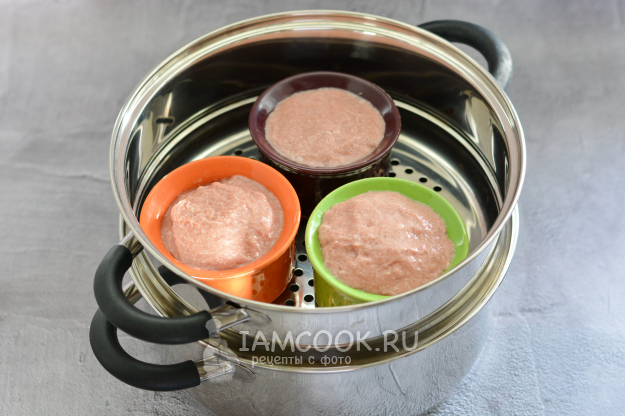 Разложите мясную массу по порционным формочкам. Готовьте диетическое суфле из говядины на пару (в пароварке или мультиварке) около 30 минут.