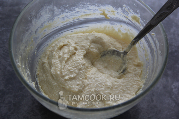 Перемешать массу ложкой, она получится не очень густой и воздушной.