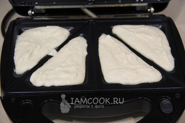Закрыть створки мультипекаря и выпекать сырники до золотистого цвета. Время выпекания зависит от мощности мультипекаря.