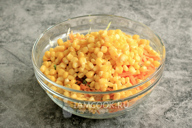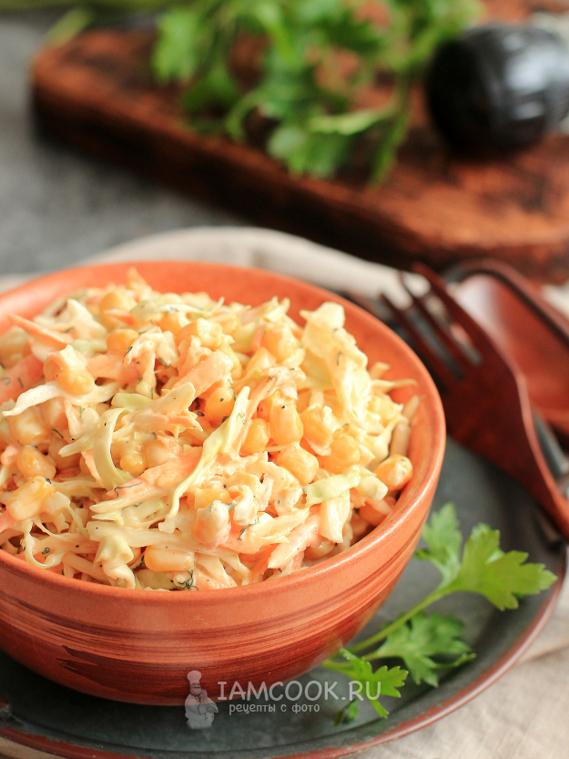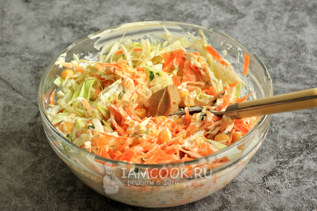 Салат с капустой, морковью, кукурузой и майонезом готов - очень быстро и очень просто. Приятного!