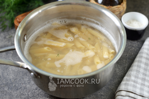 Сразу же поставьте вариться пасту согласно инструкции, обычно это около 10 минут.