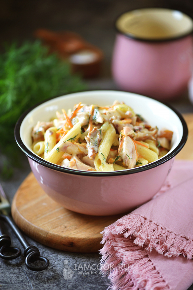 Макароны с копченой курицей готовы! Очень простое, но невероятно вкусное, сытное и ароматное блюдо разложите по глубоким тарелкам и подавайте семье на обед или ужин.