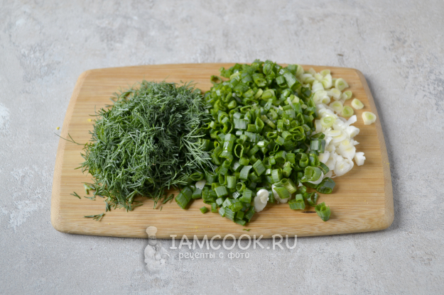 Зеленый лук и укроп промойте в воде, обсушите и мелко нарежьте.