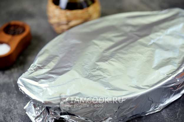 Плотно закройте форму фольгой и отправьте ее в предварительно разогретую до 180 градусов духовку в режиме верхнего и нижнего нагрева ровно на 1 час.
