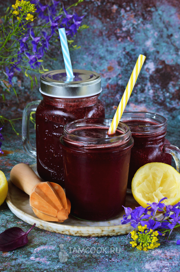 Освежающий, с пикантным ароматом базилика лимонад. Черника придает напитку просто потрясающий, насыщенный цвет. Лимонад готовится просто молниеносно - то что нужно для утоления жажды в летний зной.