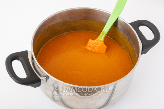 Переложите абрикосовое пюре в кастрюлю и попробуйте его на вкус. Если сладости в пюре не хватает или вы просто любите послаще, то всыпьте сахар и перемешайте.