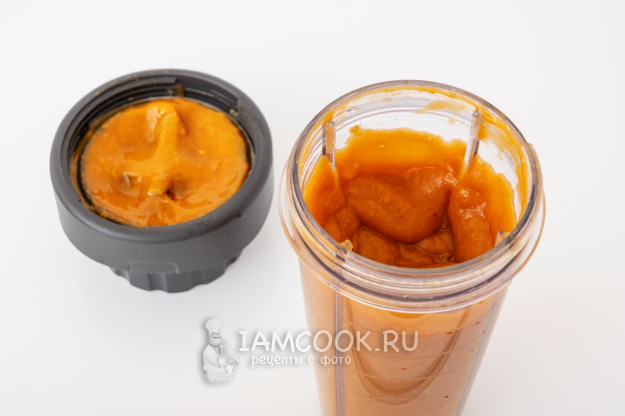 Половинки абрикосов измельчите в пюре с помощью блендера.