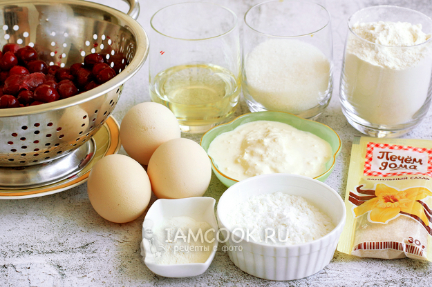 Чтобы испечь простой пирог с вишней на сметане, подготовьте все необходимое и главный ингредиент - вишню. Хорошенько ее промойте, удалите косточки, а если она замороженная, то заранее откиньте ее на сито и полностью разморозьте, чтобы лишняя влага стекла и не нарушила структуру теста при выпечке. Образовавшийся сок можно просто выпить, он безумно полезный, особенно на ночь, так как способствует выработке мелатонина - гормона сна.