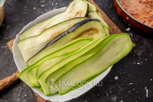 По истечении времени, когда полоски баклажанов и кабачков станут мягкими, тщательно промойте их под водой. Затем просушите бумажными полотенцами.
