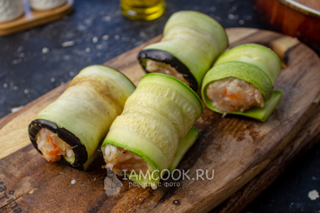 Желательно выбрать кабачок и баклажан одинаковыми по длине, так рулетики будут более-менее пропорциональными.