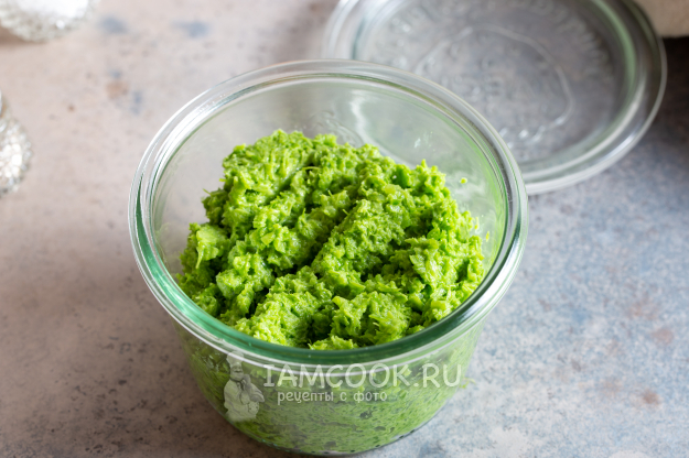 Перемешайте пасту и разложите по банкам с крышками. Уберите в холодильник или подавайте сразу на стол.