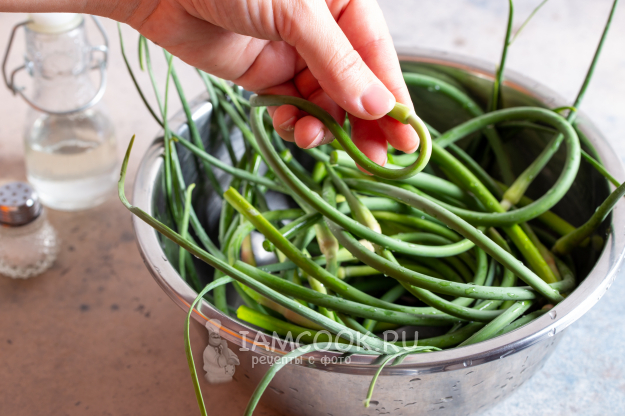 Стрелки тщательно промойте под проточной холодной водой. Отломайте мягкую его сторону, где стержень не разламывается, а просто сгибается.