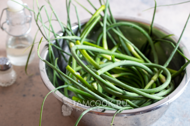 Подготовьте указанные ингредиенты. Стрелки собирайте до начала их цветения, скручивания или пожелтения. Жарить можно на растительном масле или на топлёном сливочном. Можно дополнить рецепт своими любимыми специями.