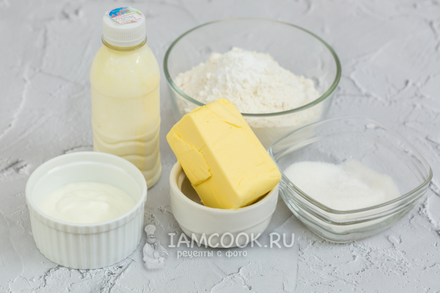 Для приготовления печенья на сметане и кефире подготовьте продукты по списку.