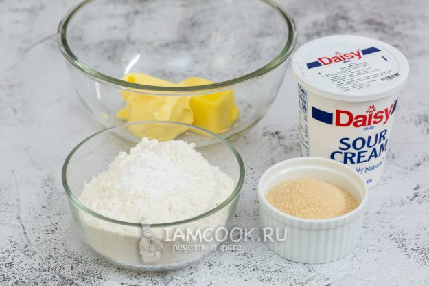Для приготовления печенья на сметане без яиц подготовьте продукты по списку.