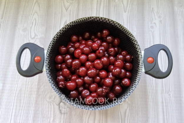Вишню хорошо помойте и удалите поврежденные ягоды.