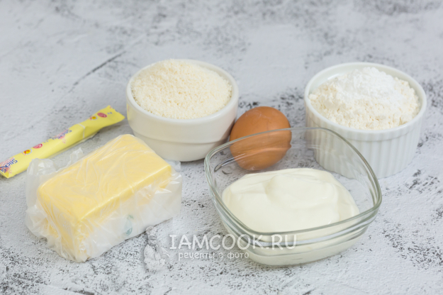Для приготовления сдобного печенья на сметане (с начинкой) подготовьте продукты по списку.