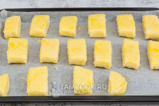 Заготовки выложите на противень, застеленный пергаментом.