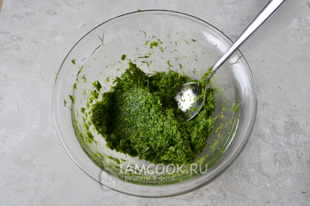 Еще раз перемешайте массу с маслом. Получилась паста потрясающе красивого изумрудного цвета.