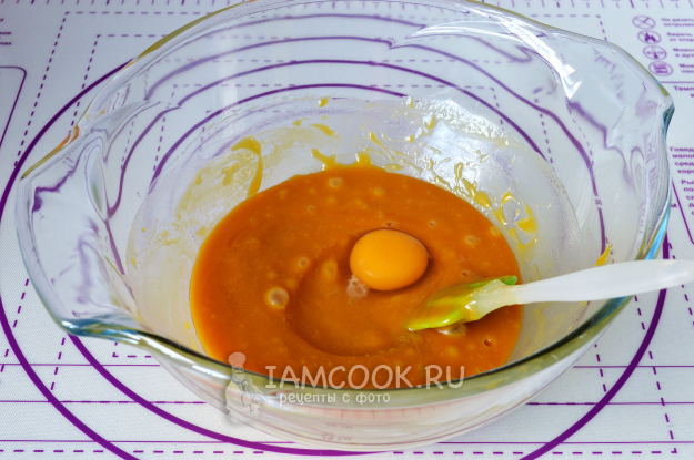 По одному ввести яйца, хорошо перемешивая после каждого. В процессе добавить щепотку соли.