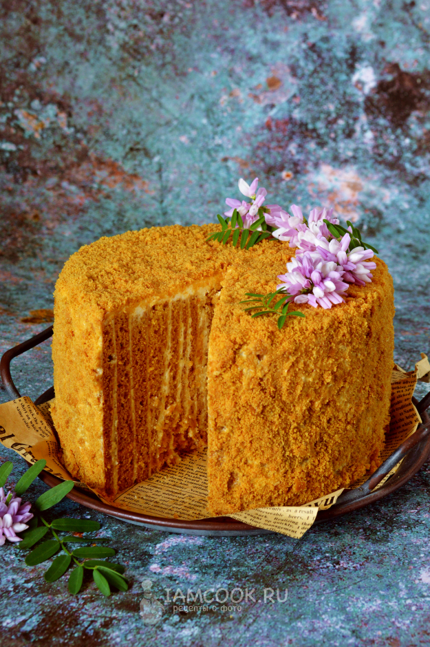 Получился вертикальный торт Медовик высотой 9 см и диаметром 16 см.